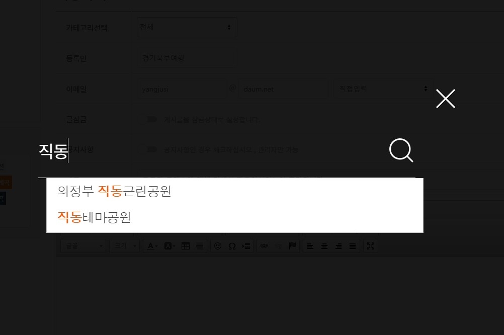 콘텐츠가 등록된 경우 검색시 자동완성기능이 추가되어 검색이 편리합니다.