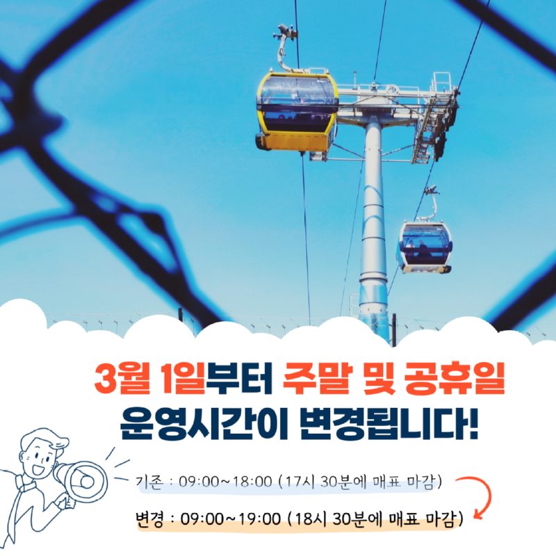 3월부터 주말 및 공휴일 운영시간을 1시간 연장하여 운영할 예정입니다.