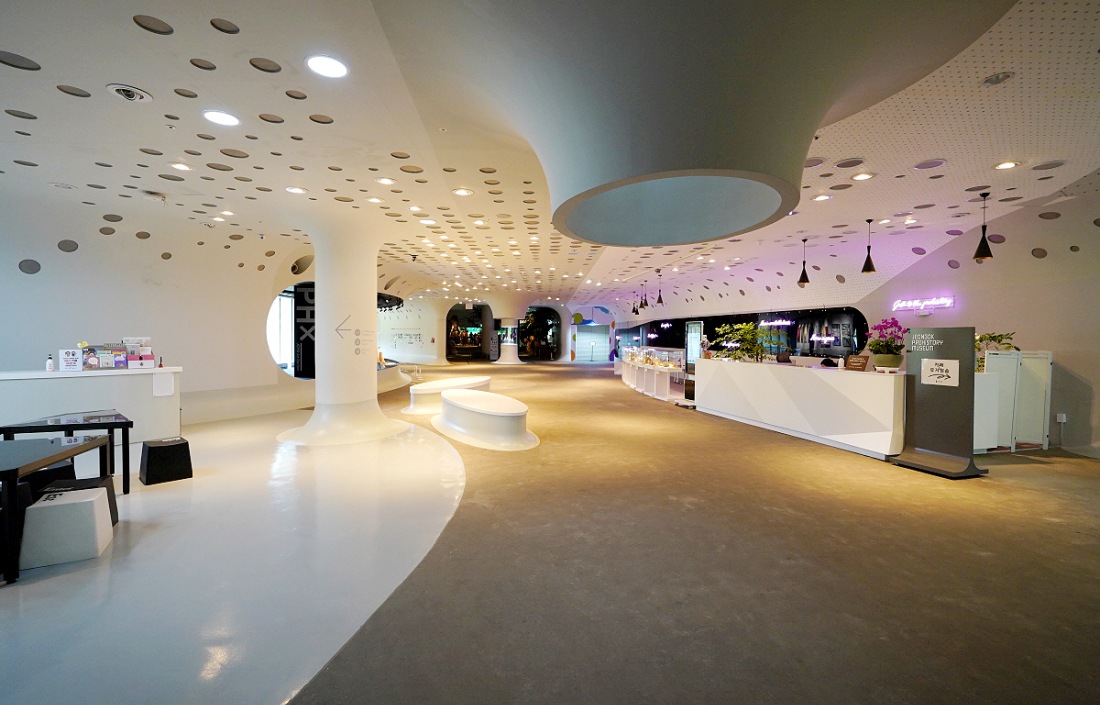 전곡선사박물관의 건축은 곡선 위주의 형태를 통해 자연과의 조화를 강조한다. 이는 인공적인 구조물보다는 자연 환경 속에서 살아갔던 선사 인류의 삶을 상징적으로 표현한 것이다. 내부 공간은 전시 동선이 자연스럽게 이어지도록 설계되어 있으며, 관람자가 시대 흐름을 따라 이동하도록 구성되어 있다.