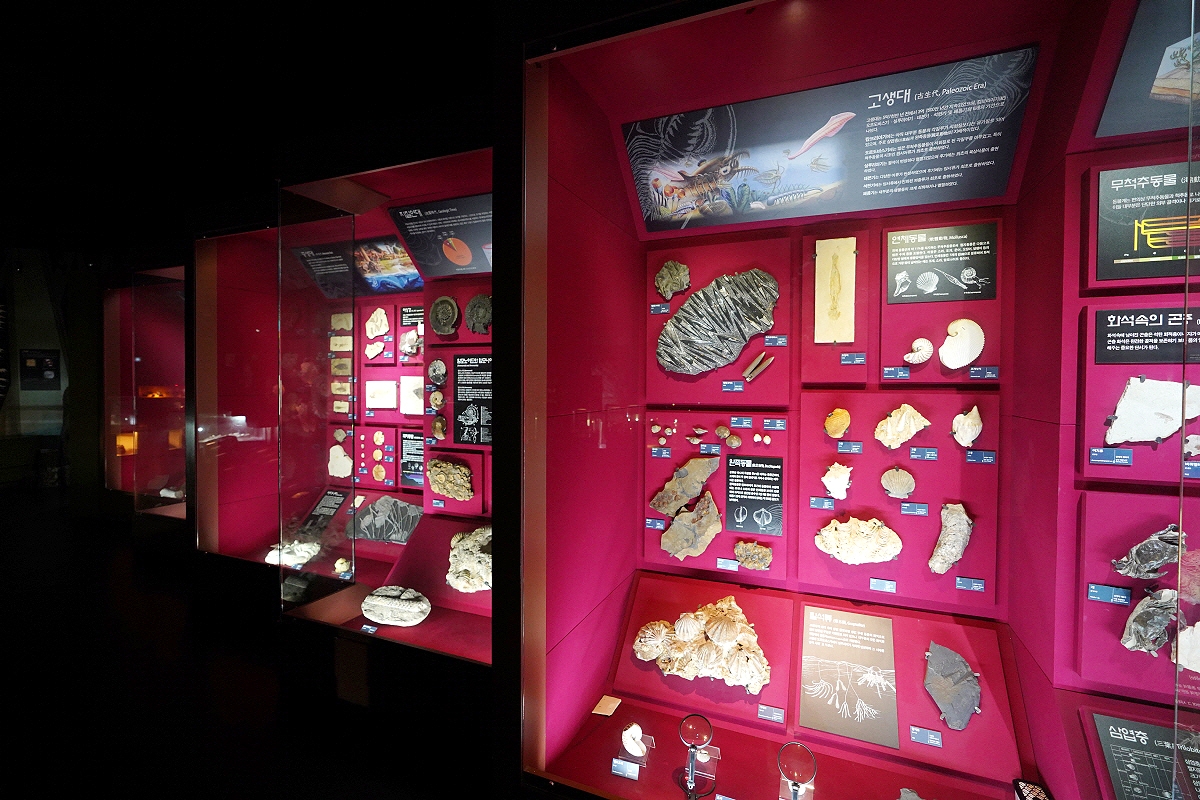 특히 해양 생물 화석, 식물 화석, 척추동물 화석 등은 각각의 생태 환경과 시대적 배경을 이해하는 데 참고가 된다. 이러한 전시는 고생물학적 연구 성과를 일반 관람자도 이해할 수 있도록 정리한 사례다.